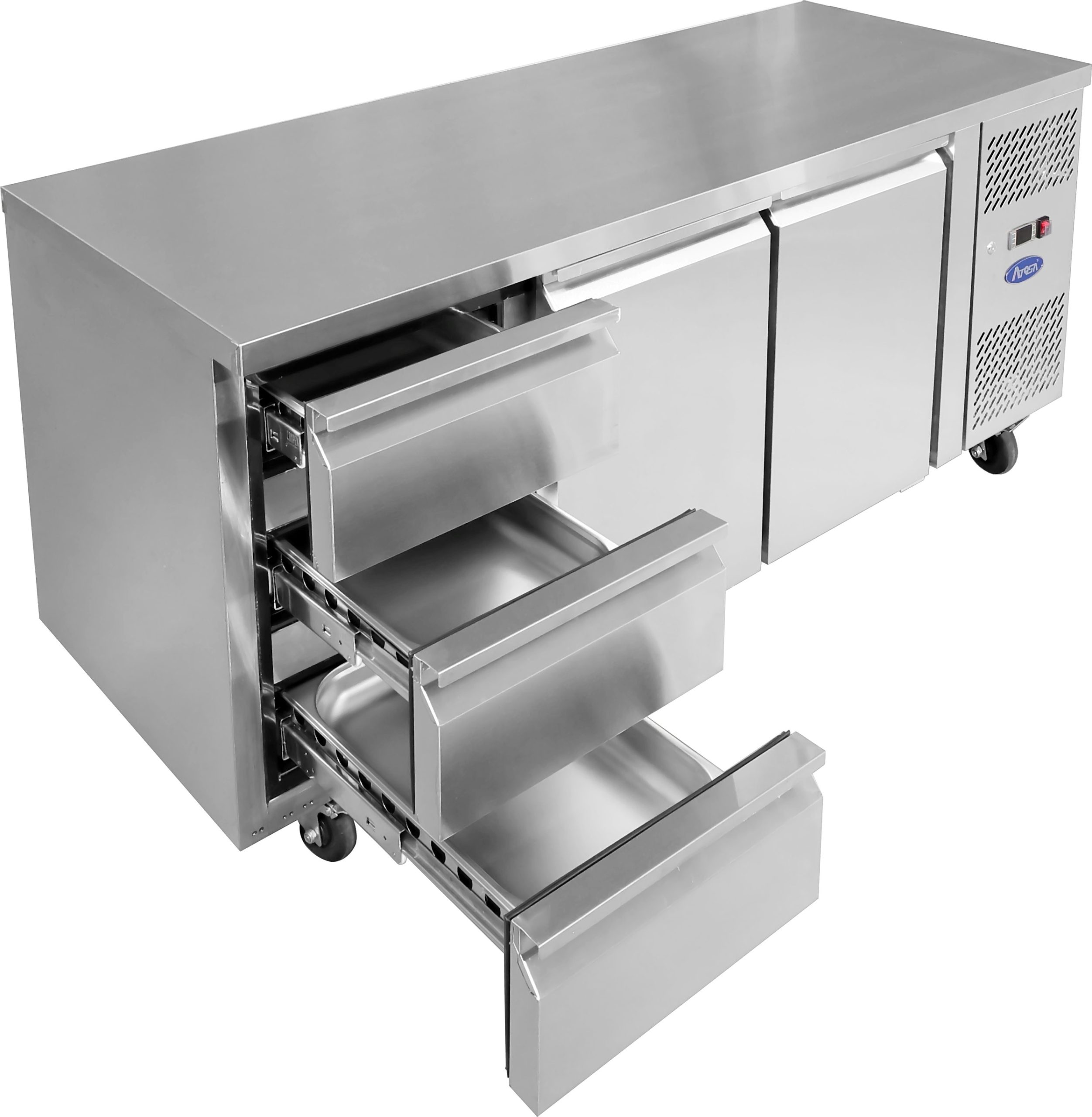 The Atosa EPF3432 3 Door Bench Fridge offers a heavy-duty solution for your commercial kitchen. Able to withstand a high ambient temperature of up to 43°C with a full 304 stainless steel construction. To ensure its versatility in any commercial kitchen, it is gastronorm compatible, accepting 1/1 gastronorm pans. This table refrigerator comes supplied with castors for ease of movement around the kitchen and can be secured with the two front locking castors to provide a stable unit once in position.